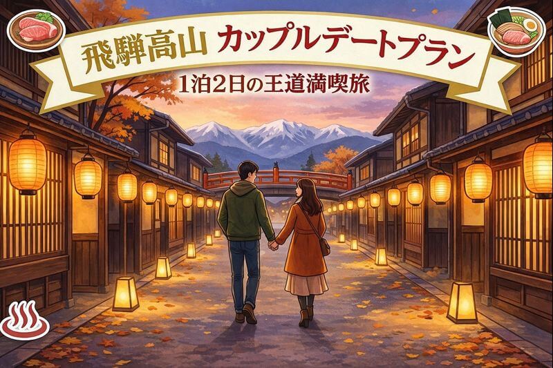 飛騨高山で理想的なカップルのデートプランを計画しているなら、情緒あふれる古い町並みと絶品グルメを堪能する1泊2日の旅が一番のおすすめです。 歴史を感じる建物の間をのんびりと歩き、美味しい飛騨牛に舌鼓を打つ時間は、二人にとって一生の思い出にな... -