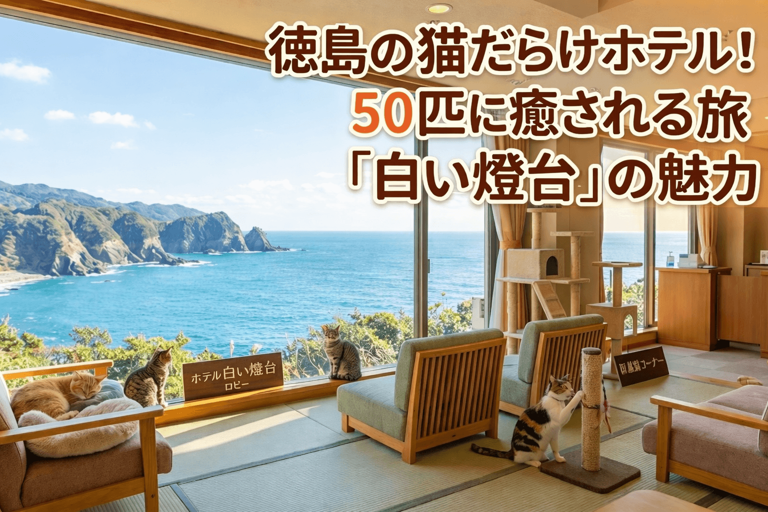 徳島で猫がいるホテルを探しているなら、美波町にある「えびす洞温泉 ホテル白い燈台」が絶対におすすめです。 徳島で「猫だらけのホテル」として有名なこの宿には、なんと50匹以上の保護猫が暮らしています。 猫好きの方にとっては、ただ宿泊するだけでな... -